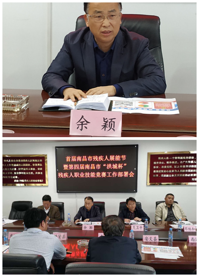 为部署首届南昌市残疾人展能节暨第四届南昌市“洪城杯”残疾人职业技能竞赛有关工作的安排,11月3日下午,首届南昌市残疾人展能节暨第四届南昌市“洪城杯”残疾人职业技能竞赛工作部署会在市残联五楼会议室召开。市残联党组书记、理事长余颖出席会议并讲话,市残联党组成员、副理事长吴卫平主持会议,市残联党组成员、副理事长林善岳、邓林和,市残联四级调研员徐训波出席会议。