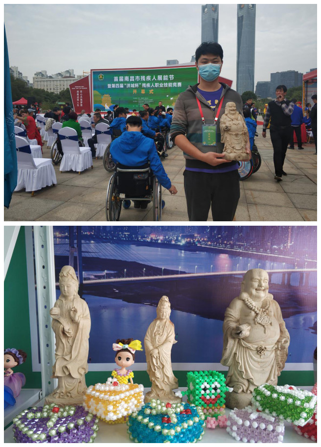南昌市首届展能节暨第四届“洪城杯”残疾人职业技能竞赛于11月6日在南昌市市政府崛起广场隆重开幕。红谷滩区凤凰洲管理处听力残疾人黄华,带着他的木雕作品来到了展能节现场。黄华自幼失聪,但他没有自怨自艾,2006年开始跟着师傅学习木雕手艺,掌握了基础的雕刻工艺。2007年开始从事佛像雕刻,随着阅历的增长,对木雕佛像的雕刻、修缮事宜有了更深刻的体会。黄华是广大残疾人中的普通一员,但他身残志坚,不懈学习的精神值得大家学习。