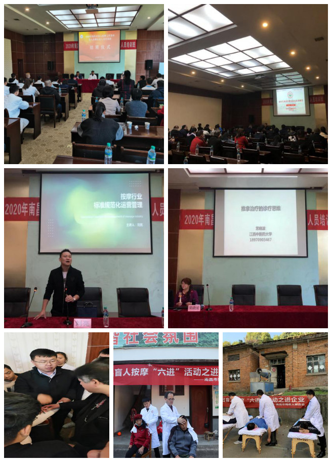 此次培训历时3天,培训课程包括盲人按摩相关政策解读、按摩行业的标准规范化运营管理、按摩临床中常见的安全注意事项和朱氏一指禅推拿与失眠的诊治等四个方面。同时利用晚上的时间开展了分组讨论,针对当天的培训内容交流学习心得,碰撞出新的思维火花;利用培训间隙深入湾里社区、景点、养老院等开展了南昌(洪派)盲人按摩免费体验志愿服务活动,做到学用结合,宣传南昌(洪派)盲人按摩品牌。