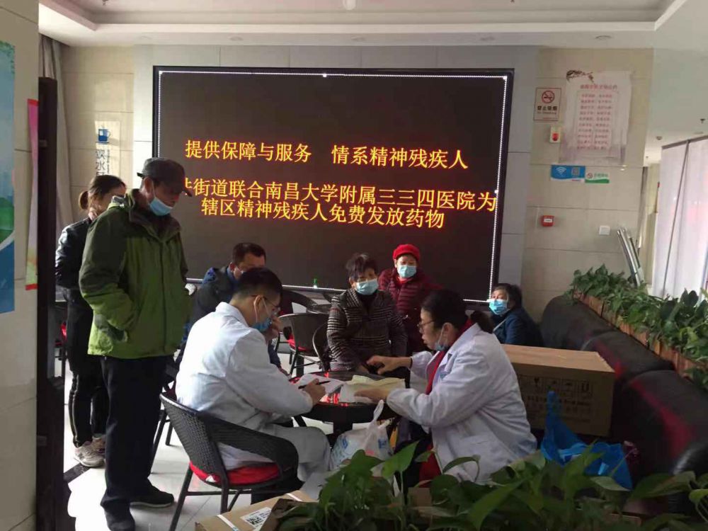 为进一步做好精神病防治康复工作,切实解决贫困精神病患者的治疗与康复,减轻精神病患者家庭的经济负担,沙井街道与南昌大学附属三三四医院联合开展2020年度为辖区精神残疾人免费发放药物活动。残疾人监护人现场领取,在发放药品过程中,医护人员对陪同前来的患者家属讲解了药品功能性质以及用药规范,叮嘱其家人严格监护,注意安全用药。