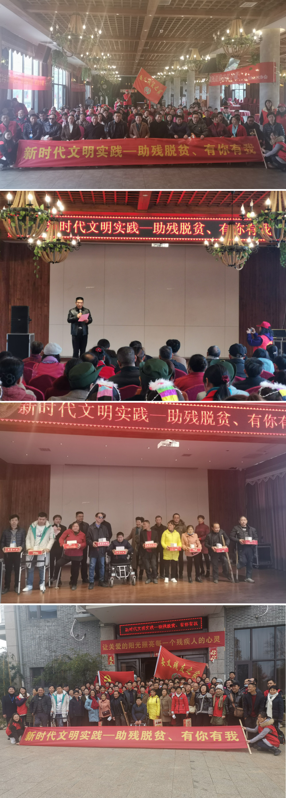 为进一步增强全社会扶残助残意识,大力弘扬人道主义思想和中华民族扶贫济困传统美德,倡导“平等、参与、共享”的现代文明社会残疾人观,形成理解、尊重、关心、帮助残疾人的良好社会风尚。12月1日安义县残联在石鼻镇世外山庄举办第29次国际残疾人日活动。本次活动主题是“新时代文明实践——助残脱贫,有你有我”。