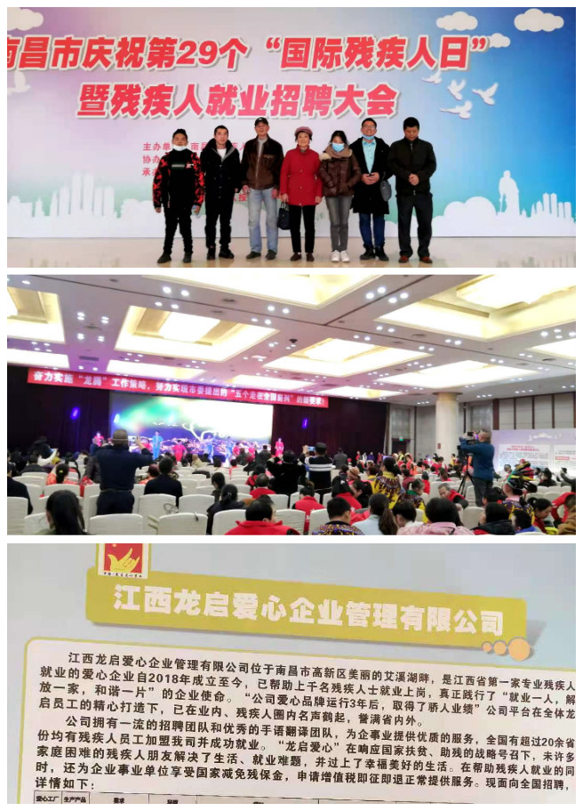 2020年12月3日,是第29个“国际残疾人日”。当天,、主办单位:南昌市肢残人联合会·,承办单位:东湖区残疾人联合会共同举办了庆祝活动。