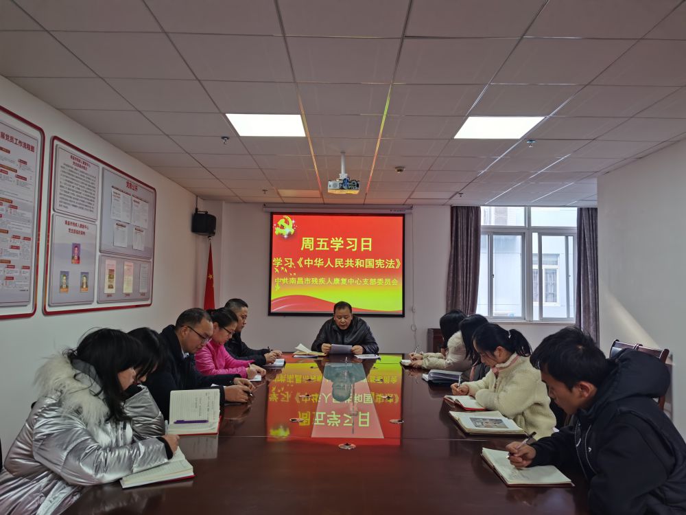 今年是第七个“国家宪法日”。为认真学习贯彻习近平法治思想,深刻认识我国宪法的深厚底蕴,推动中心党员干部职工深入学习宪法,弘扬宪法精神,维护宪法权威,坚定宪法自信,增强宪法自觉,12月4日下午,南昌市残疾人康复中心组织党员干部开展集中学习宪法活动 。