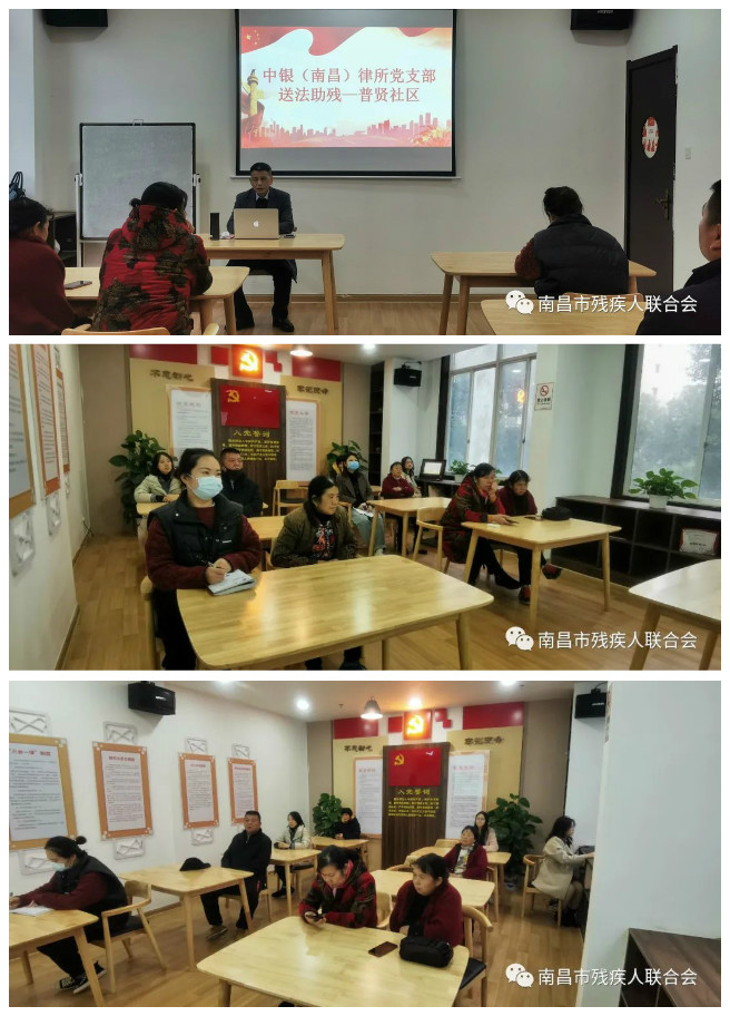 为了将法律知识送到残友身边,帮助残友解决生活中的法律疑惑, 12月1日下午,市残联法律顾问——北京市中银(南昌)律师事务所胡顺如律师来到红谷滩区沙井街道普贤社区,开展“南昌残友.法治学堂”送法助残活动,就当下法律热点——民法典举办专题普法讲座。