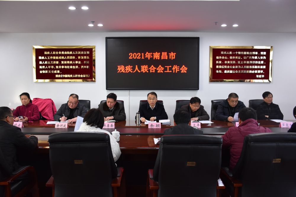 2021年1月4日上午,新年上班第一天,党组书记、理事长余颖主持召开2021年南昌市残疾人联合会工作会。他指出,2021年是中国共产党成立100周年,也是“十四五”开局之年,做好今年工作责任重大、使命光荣,要落细落实上级残联和市委市政府各项决策部署,立足全市实际,开拓创新、真抓实干,全力以赴推进南昌残疾人事业高质量发展,确保“十四五”开好局、起好步。