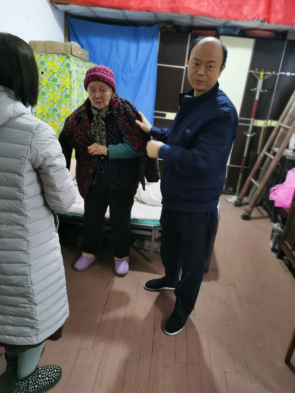 老人涂全英,已90岁高龄,由于高血压,导致行为能力困难。余国权与其家属亲切交谈,询问老人身体状况和家里生活情况,叮嘱老人一定要保重好身体,辛苦了一辈子,好好安享晚年。