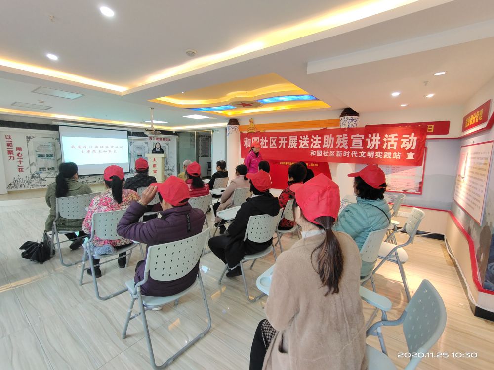 为进一步提高广大残友的法律意识,形成守法知法用法的良好氛围,将法律热点送到群众身边,11月25日上午,市残联邀请北京市中银(南昌)律师事务所崔萍律师来到高新区和园社区,开展2020年“南昌残友法治学堂”送法助残活动,就民法典的相关热点问题举办专题普法宣传讲座。