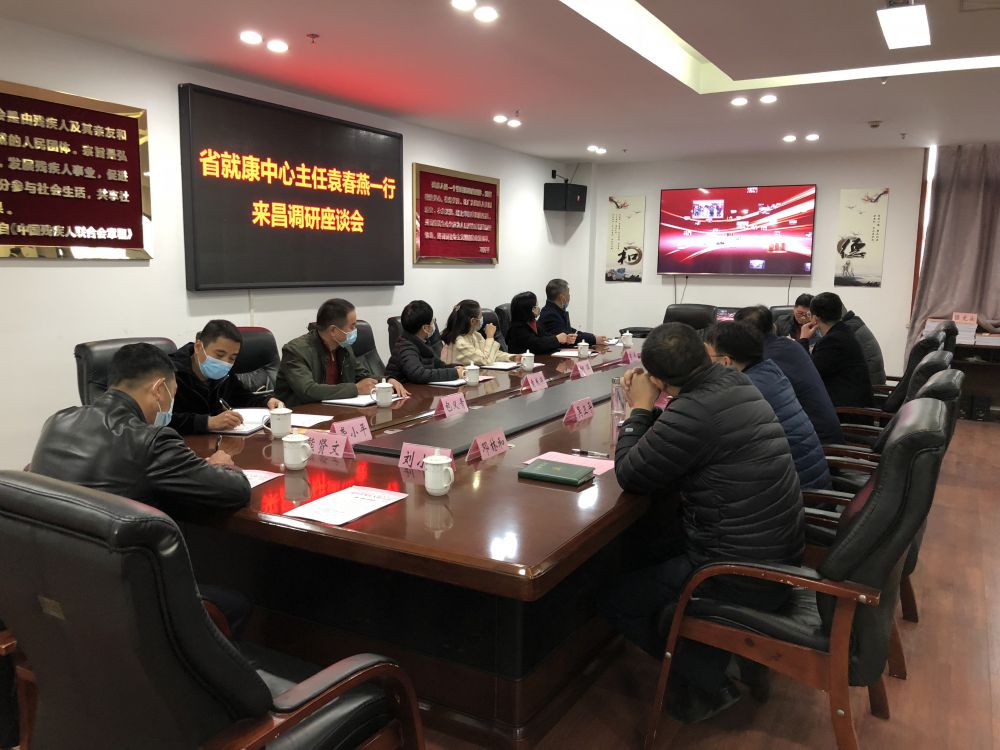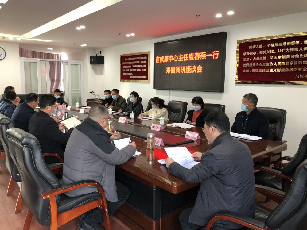 1月19日上午,省残疾人就业创业与康复服务中心主任袁春燕、副主任胡萍等一行8人来我市调研残疾人就业创业、残疾人康复和盲人按摩等工作,市残联党组书记、理事长余颖,副理事长吴卫平、林善岳、邓林和,四级调研员徐训波等陪同,并在五楼会议室进行了座谈交流。