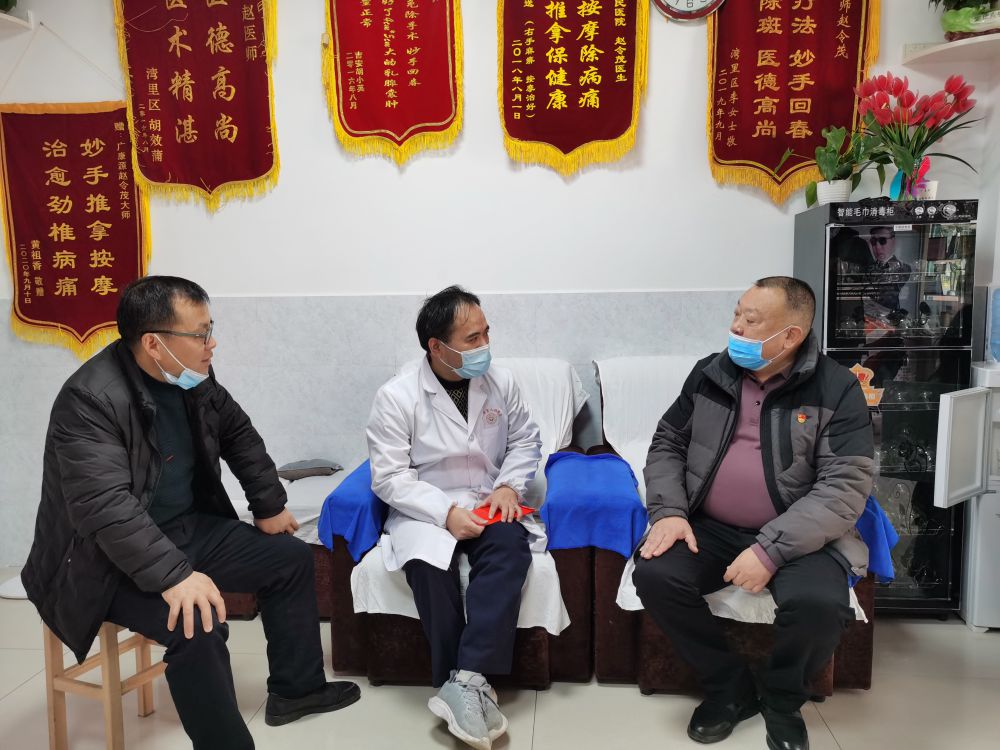徐训波深入红谷滩区医健盲人按摩店、圣康盲人按摩店、御按堂按摩店和湾里管理局广康源盲人按摩店,与机构负责人进行亲切交谈,详细了解机构当前经营状况、盲人技师的收入、疫情防控措施、生活等情况,表示党和政府一向十分关心、关注弱势群体,鼓励盲人朋友要自立自强,进一步增强信心,在党和政府的关心帮助下,通过不断提高按摩专业知识和技能,依靠自己勤劳的双手,过上美好生活。他叮嘱盲人按摩机构要进一步提升服务水平和经营管理能力,提升盲人按摩在市场中的生存竞争力,希望盲人按摩行业在大家的努力下发展得更快更好,真正把南昌(洪派)盲人按摩品牌做大做强做响。同时,徐训波结合当前形势提出三点建议:一是盲按从业人员提高防疫意识,保障个人健康;二是行业内应加强沟通与信息交流,相互促进;三是盲人按摩机构应着实提高服务质量,坚持店内消毒,保障作业环境,打造一个让顾客放心消费的环境,确保安全服务。
