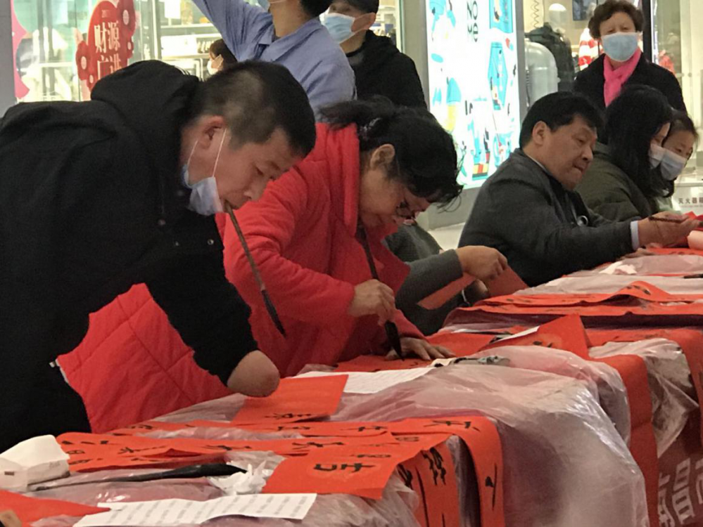 残疾人文联在商场为市民写春联的活动,应许多商场邀请,接下来的每天都在继续上演,直到大年三十。