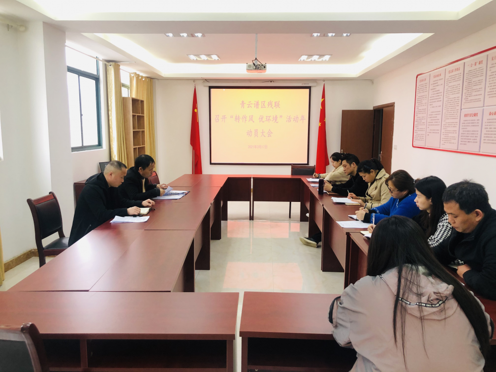 会议主要传达学习市残联和我区“转作风 优环境”活动年工作的主要精神,详细解读《青云谱区 2021“转作风 优环境”活动年方案》、《中共青云谱区委关于转作风优环境的意见》,传达区纪委作风建设监督问责专项行动相关要求。