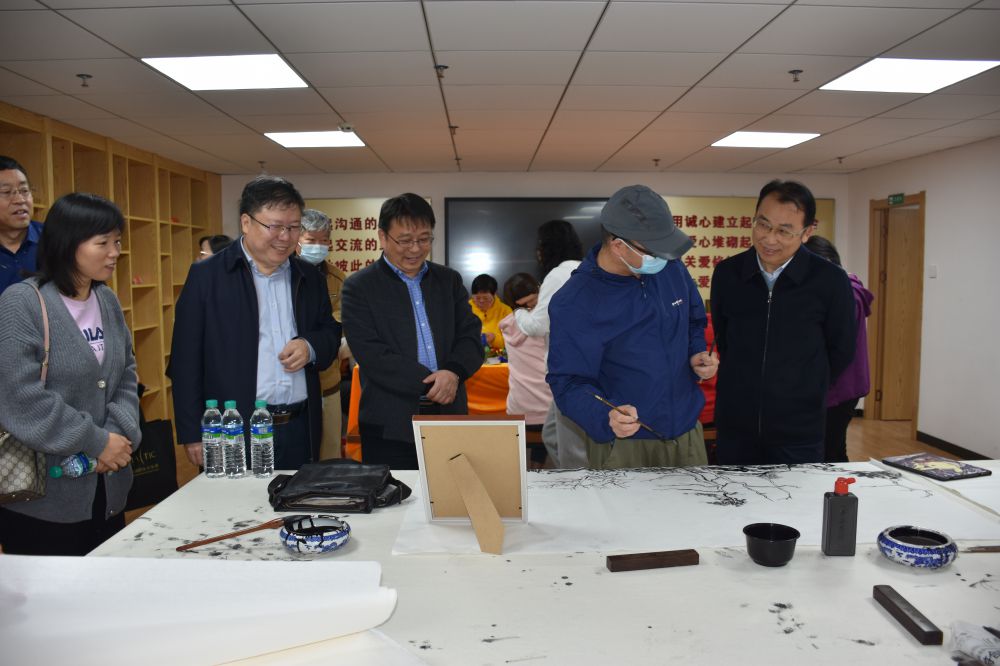 崔文泽一行首先来到南昌市聋人协会活动中心(聋人活动中心康复站),在市聋协主席的引导下,参观了各功能活动室,并与在康复站开展文体活动、手工制作、书画练习的聋人朋友进行了交流。