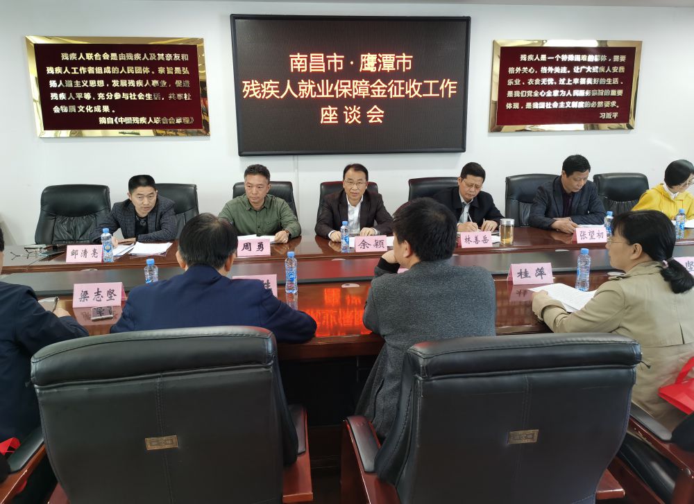 4月21日上午,南昌市、鹰潭市残疾人就业保障金征收工作座谈会在市残联五楼会议室召开。会议由市残联党组书记、理事长余颖主持,鹰潭市残联主要负责人李荣生,鹰潭市税务局督办钟胜,南昌市残联党组成员、副理事长林善岳,南昌市税务局相关同志出席座谈会。