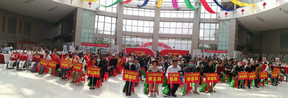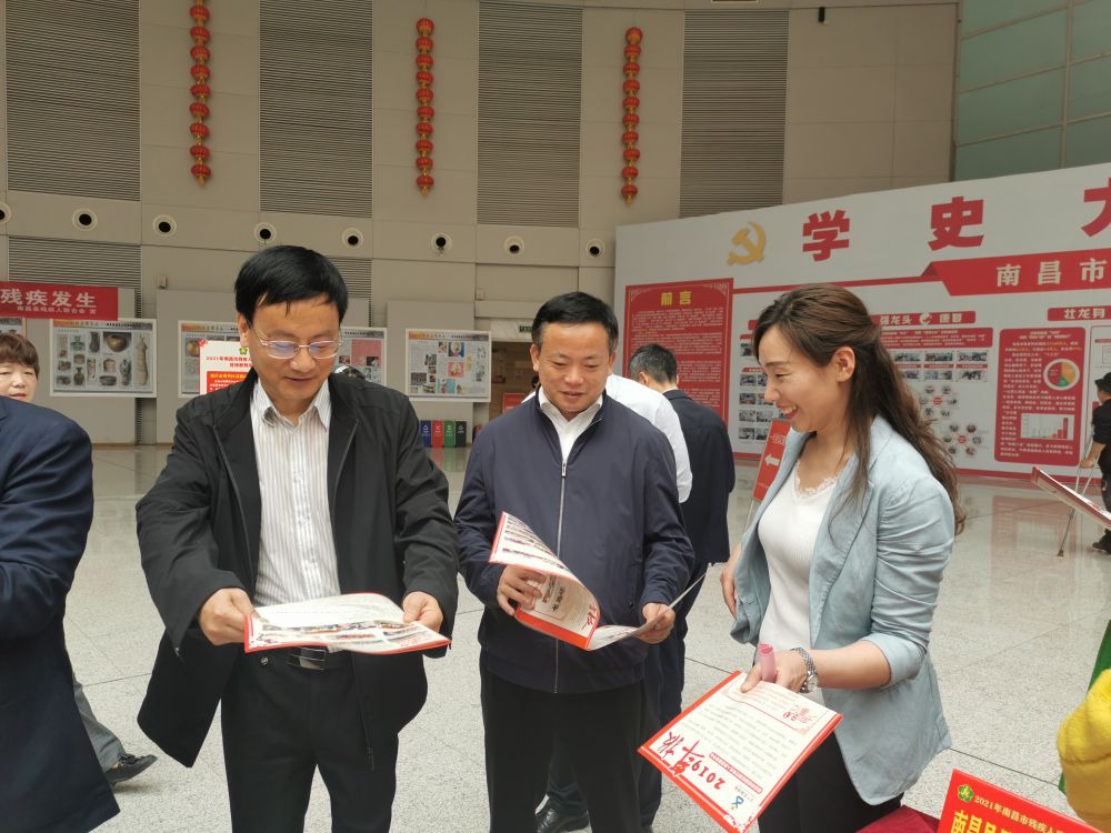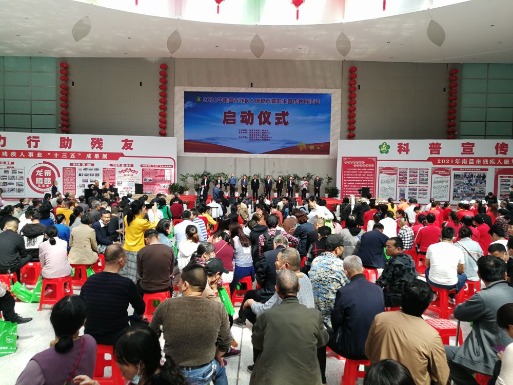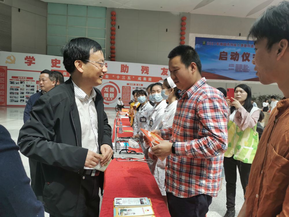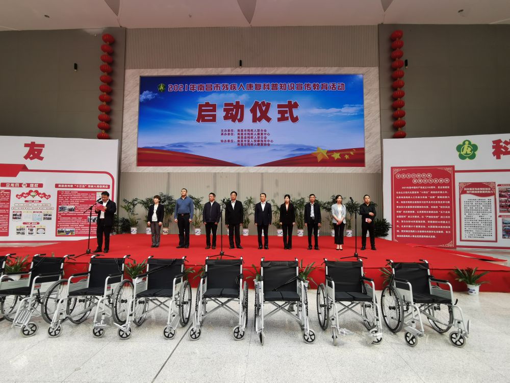 为深入开展党史学习教育,贯彻落实2021年市残联“转作风、优环境”活动年工作要求,进一步提高公众残疾预防意识和残疾人的康复意识,全面提升预防康复精准服务水平,4月23日上午,以“关爱残疾人、共启新征程”为主题的2021年南昌市残疾人康复科普知识宣传教育活动启动仪式在南昌县文化会展中心举行。省残联党组成员、副理事长黄建国,市残联党组书记、理事长余颖,南昌县委常委胡朝辉,省残联三级调研员曾建莉,市残联党组成员、副理事长邓林和等领导出席活动,活动由市残联党组成员、副理事长吴卫平主持。