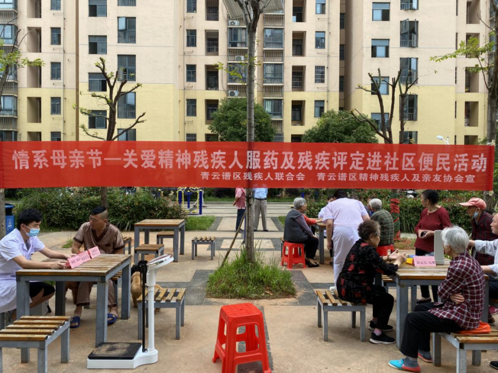 5月8日上午,青云谱区残联、青云谱区精神残疾人及亲友协会在三店西社区开展“情系母亲节 关爱精神残疾人服药及残疾评定进社区”活动。活动内容主要包括为精神残疾人提供免费服药、健康咨询、免费测量血糖血压、为部分严重精神障碍患者因为生活困难等原因不能到指定医院进行残疾等级鉴定,无法办理残疾证的难题,确保惠残政策应享尽享,区残联邀请南昌康宁医院专家到活动现场为精神残疾人进行残疾评定,为因出行不便的精神残疾人提供到期换证办证等便民服务。