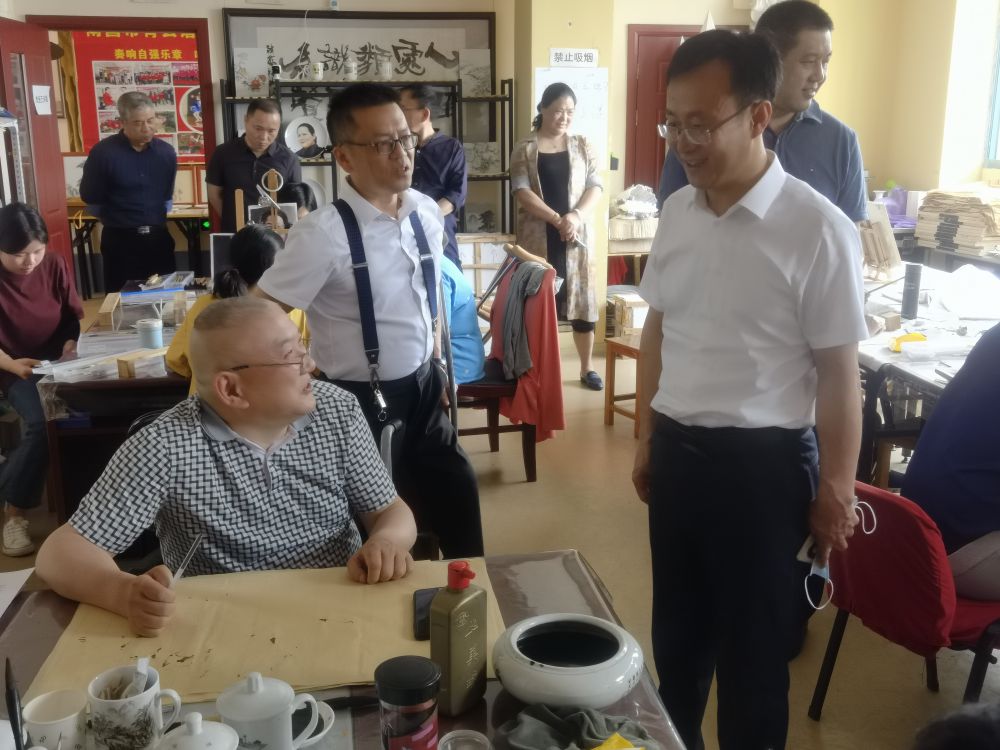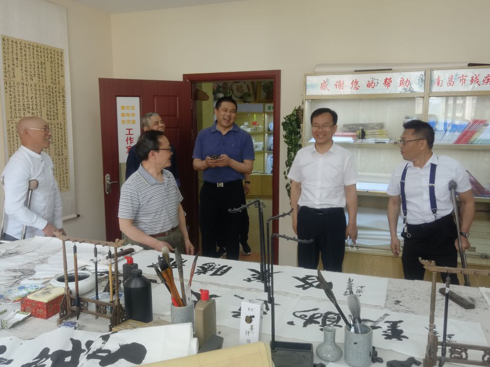 5月10日上午,中国残联宣文部副主任李德富一行来到南昌市残疾人文化创意产业园调研指导残疾人文化艺术工作。省残联宣文处处长万润妹、市残联副理事长邓林和陪同调研。