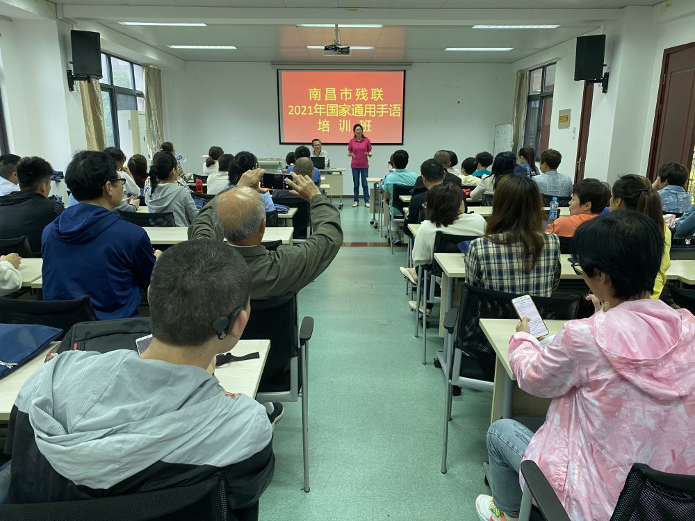 为深入贯彻党史学习教育精神,落实“我为群众办实事”活动要求,进一步规范和推广国家通用手语,满足广大听障残友需求,5月19日上午,南昌市残联2021年国家通用手语培训班在中共南昌市委党校顺利结业。来自全市12个县区残联的业务骨干、聋协负责人及听障学员共计70余人参加了培训班。