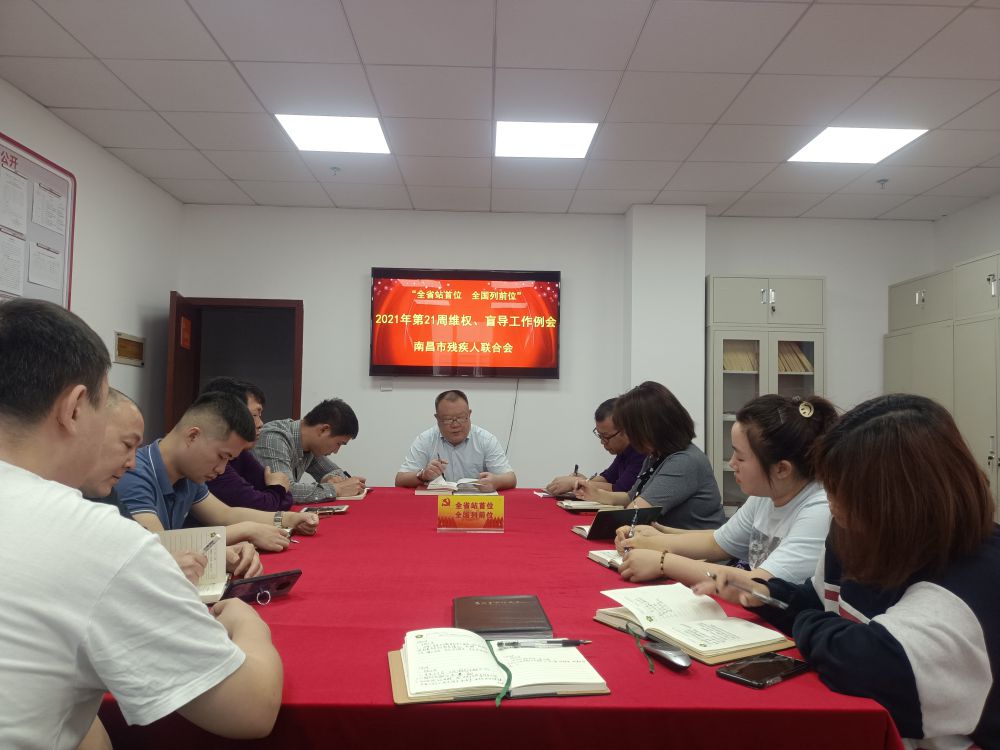5月24日,新一周工作开始,市残联副理事长吴卫平、林善岳、邓林和,四级调研员徐训波等分管领导分别主持召开分管口2021年第21周工作例会,各科室、下属单位全体成员归口参加会议。