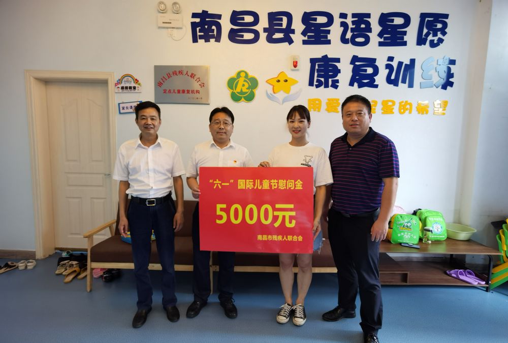 5月27日下午,市残联党组成员、副理事长吴卫平带队先后来到南昌天线宝宝康复中心、南昌县天韵残疾人康复教育中心、南昌县星语星愿康复训练中心开展“六一”民办残疾儿童康复机构走访慰问活动,给小朋友们送去节日的祝福,向康复老师致以亲切的问候,并为机构送上慰问金。