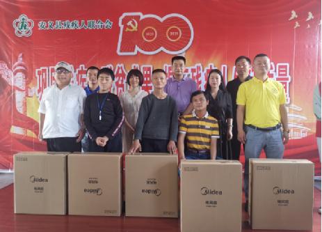 活动中,县残联理事长张铭、副理事长余海清向重度残疾人代表、脱贫残疾人代表发放了慰问品。