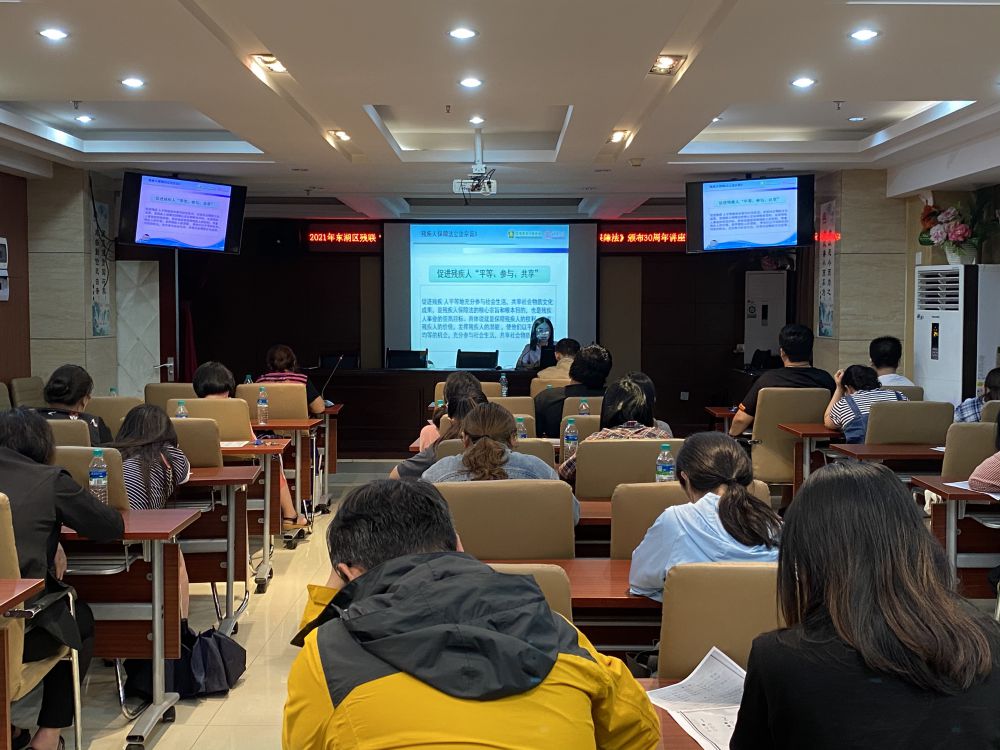为纪念中华人民共和国残疾人保障法颁布30周年,引导残疾人学党史、听党话、跟党走,5月13日下午,区残联举办“学党史、听党话、跟党走”暨纪念《中华人民共和国残疾人保障法》颁布30周年讲座,各镇(街道、管理处)残联干部、残疾人专干,部分村(社区)残协干部、残疾人专职委员参加。