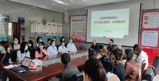 为推动街道“转作风优环境”活动向纵深开展,结合党史学习教育,不断贯彻“我为困难残疾人办实事”服务理念,5月18日上午,西湖区朝农街道在隆泰苑社区居民议事厅开展第31次“全国助残日”志愿助残活动,组织辖区残疾人召开座谈会并联合朝阳卫生院中西医结合医院开展免费义诊活动。朝阳卫生院中西医结合医院专家、朝农街道社会事务办相关工作人员、社区干部,困难残疾人近30余人参加活动。