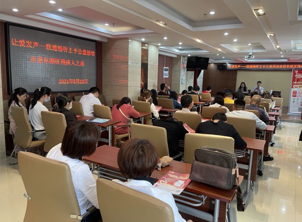 为满足广大听力、言语残疾人的信息交流无障碍,推动“我为群众办实事”实践活动走深走实,让听障残疾人共享社会发展成果,5月25日下午,东湖区残联、东湖区聋协联合联通南昌分公司在残疾人之家,共同举办让爱发声——联通畅听王卡公益活动,各镇(街道、管理处)残联干部、残疾人专干,部分村(社区)残协干部及辖区听障朋友参加了本次活动。