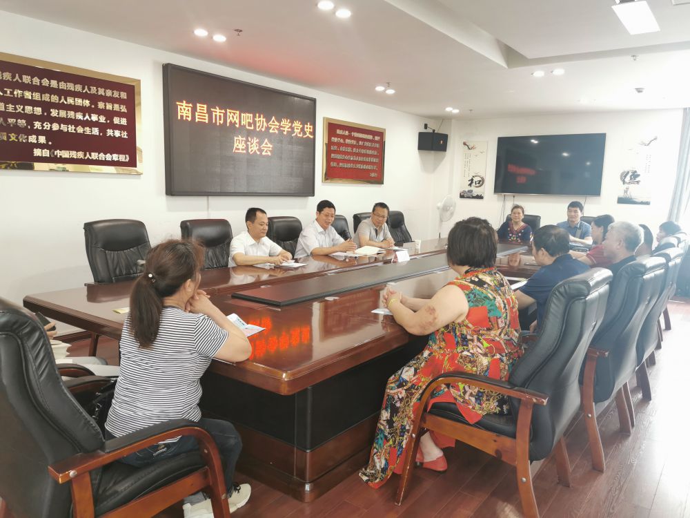 6月22日,南昌市残疾人网吧经营协会在南昌市残联五楼会议室召开党史学习教育会。市残联副理事长林善岳出席会议。到会的有协会会员20余人,南昌市肢协副主席、残疾人网吧经营协会会长主持学习教育会。