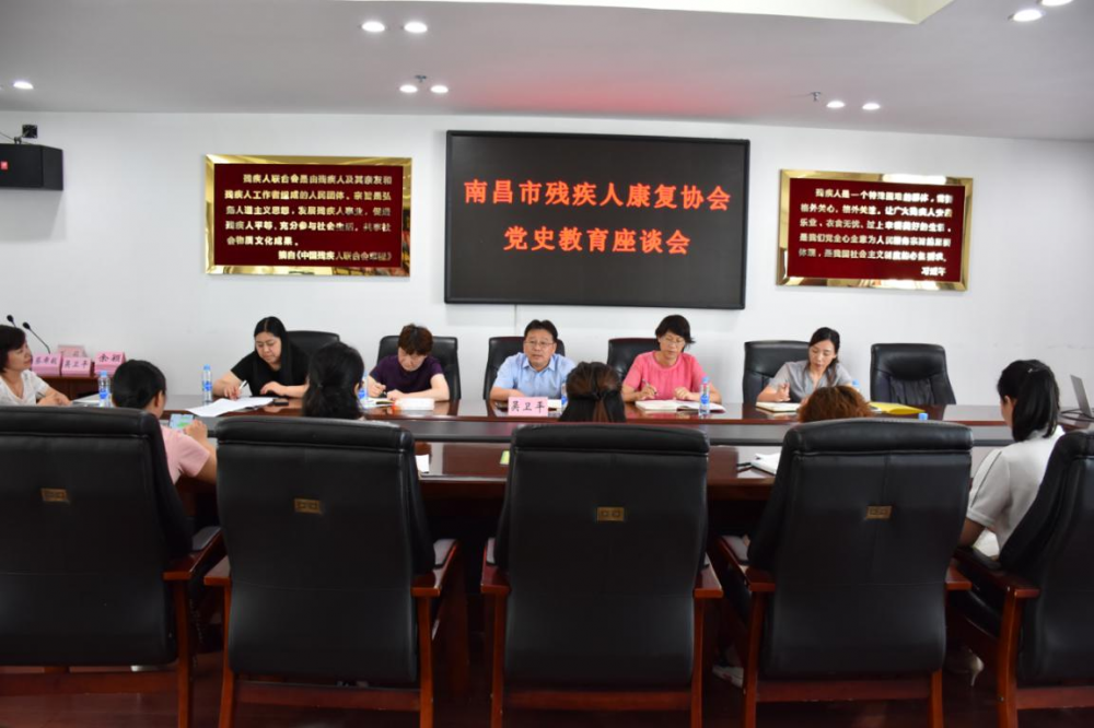 6月23日,南昌市残疾人康复协会党史教育座谈会在市残联五楼会议室召开,市残联党组成员、副理事长吴卫平出席会议并讲话,会议由南昌市残疾人康复协会会长洪丽娟主持。全市协会22家单位负责人及康复科负责人共同参加会议。