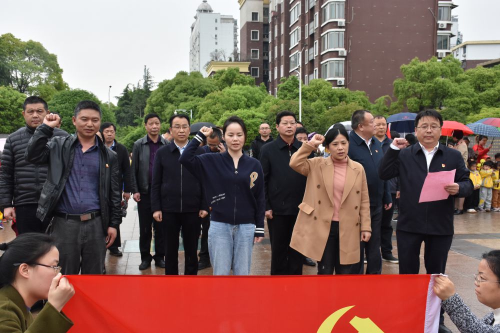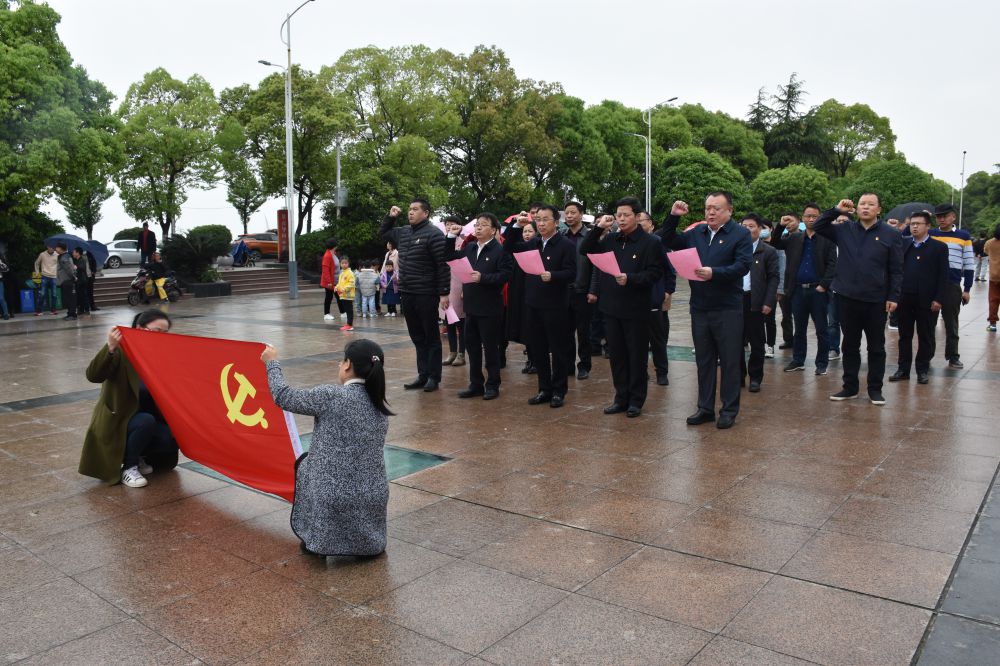 大家怀着崇敬的心情来到方志敏雕塑前,敬献花圈,在庄严肃穆的气氛中,大家向烈士三鞠躬。全体党员面对党旗,重温入党誓词,进一步坚定理想信念,树牢全心全意为人民服务的宗旨。三名新党员在机关党总支书记吴卫平带领下,开展了入党宣誓活动。慷慨激昂的声音表达了大家为共产主义事业奋斗终身的决心。