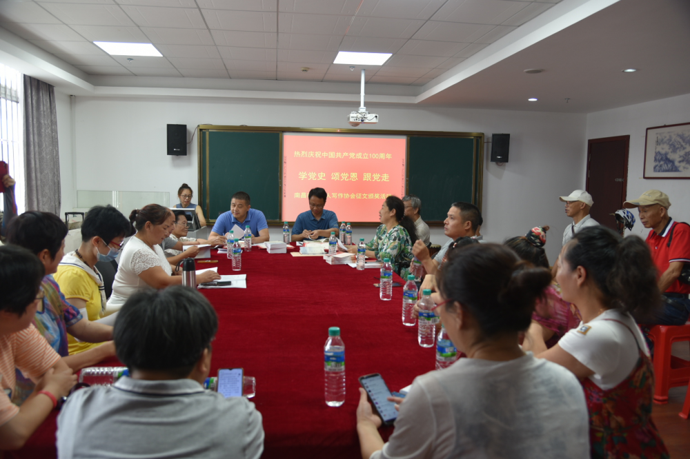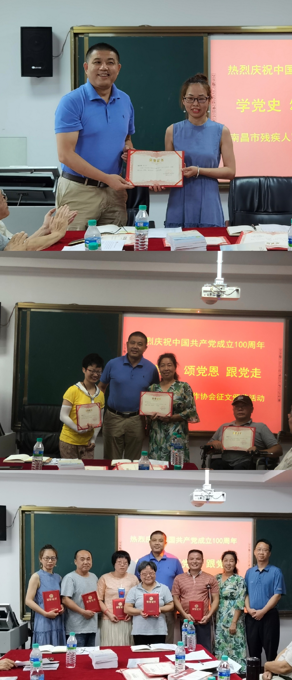 7月9日上午,南昌市残疾人写作协会在市残联三楼会议室开展“庆祝中国共产党成立100周年·学党史、颂党恩、跟党走”座谈会及征文颁奖活动。市残联副理事长邓林和出席并讲话。写作协会会长樊萍主持。写作协会顾问林汉梁、余庆萍,写作协会会员40多人参加会议。