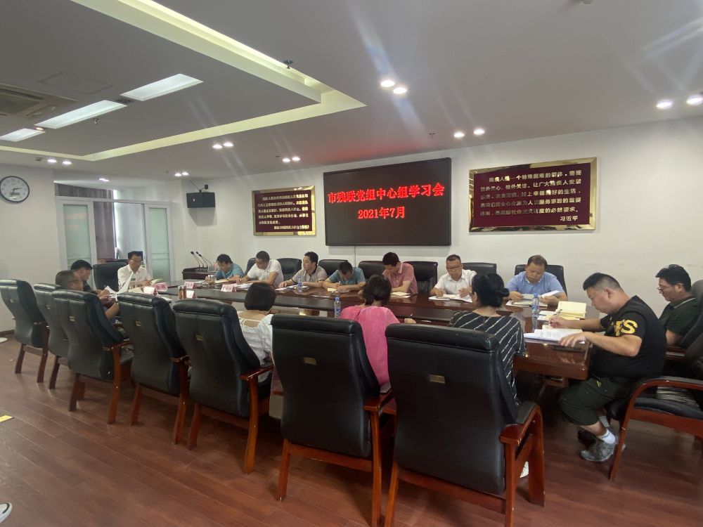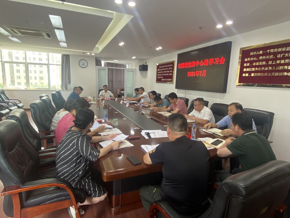 7月12日下午,市残联开展党组中心组学习,认真学习贯彻习近平总书记在庆祝中国共产党成立100周年大会重要讲话精神。会议由市残联党组书记、理事长余颖主持,市委党史学习教育第八巡回指导组成员谢爱民参加。
