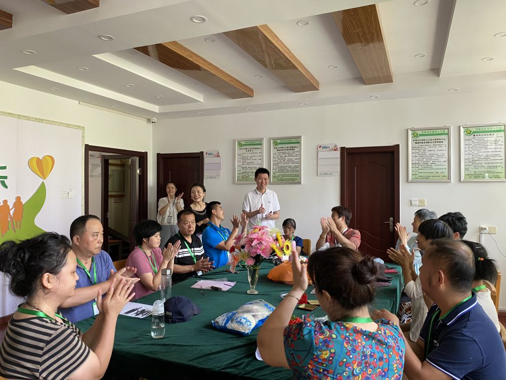 黄河一行现场查看了社区残疾人之家硬件设施,看望了正在进行辅助性就业的残友,关心他们的生活、学习、就业情况,和大家一起共唱红歌。随后,黄河理事长在会议室主持召开座谈会,详细听取了社区负责人关于开展残疾人日间照料工作的情况汇报,并向照料中心老师、残友、残疾人家属、志愿者朋友等,就项目运营以来存在的问题和下一步意见建议进行了征集。