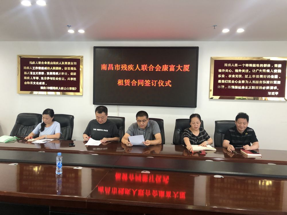2021年7月20日上午,南昌市残联康富大厦租赁合同签订仪式在市残联5楼会议室举行。南昌市残联副理事长邓林和、南昌市东湖区仁爱之家儿童康复中心法人代表曾珵,市残联康富大厦租赁领导小组成员参加了签约仪式。