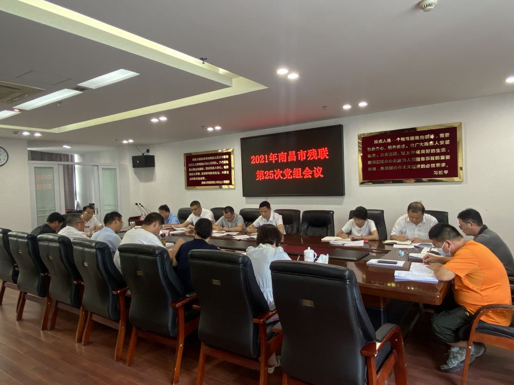 7月29日下午,市残联2021年第25次党组会议在五楼会议室召开,党组书记、理事长余颖主持会议。