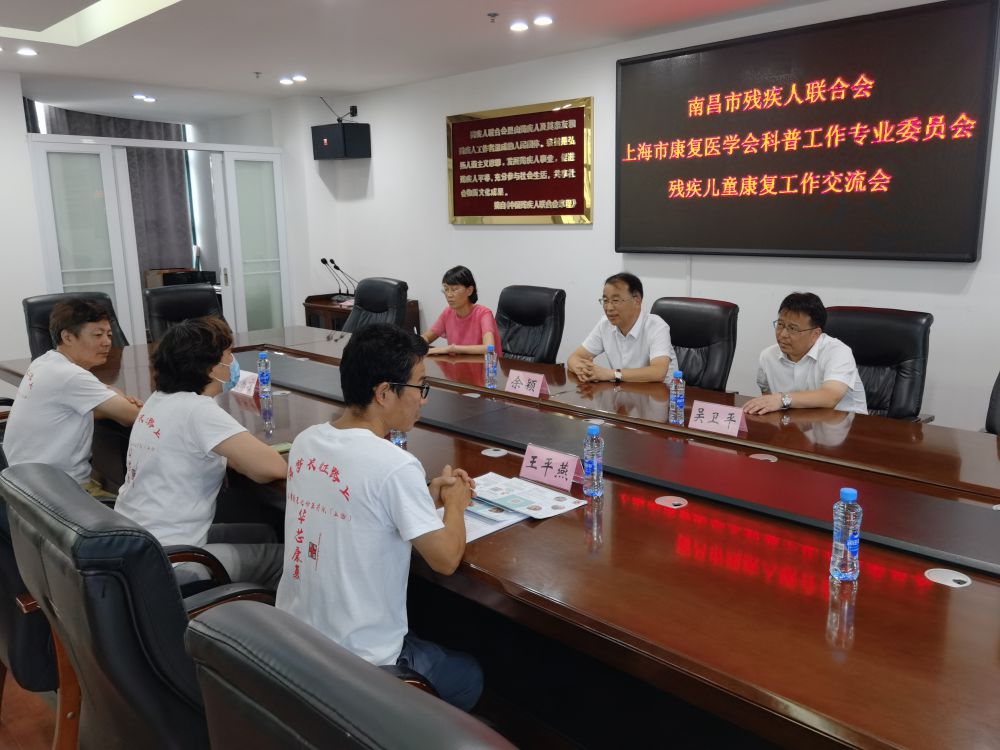7月30日下午,南昌市残联与上海市康复医学会科普工作专业委员会召开残疾儿童康复工作交流会,南昌市残联党组书记、理事长余颖,党组成员、副理事长吴卫平,上海市康复医学会科普工作专业委员会副主委孙华出席会议。