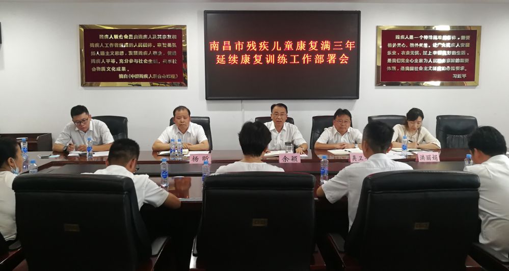 8月3日下午,南昌市残疾儿童康复满三年延续康复训练工作部署会在市残联五楼会议室召开,市残联党组书记、理事长余颖出席会议并讲话,会议由党组成员、副理事长吴卫平主持。
