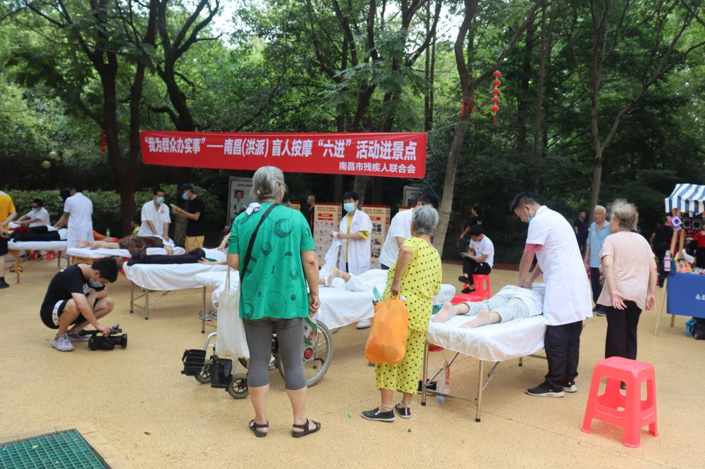 8月5日上午,市残联就创中心党员志愿服务队深入八一公园开展第十八场南昌盲人按摩“六进”志愿服务活动。