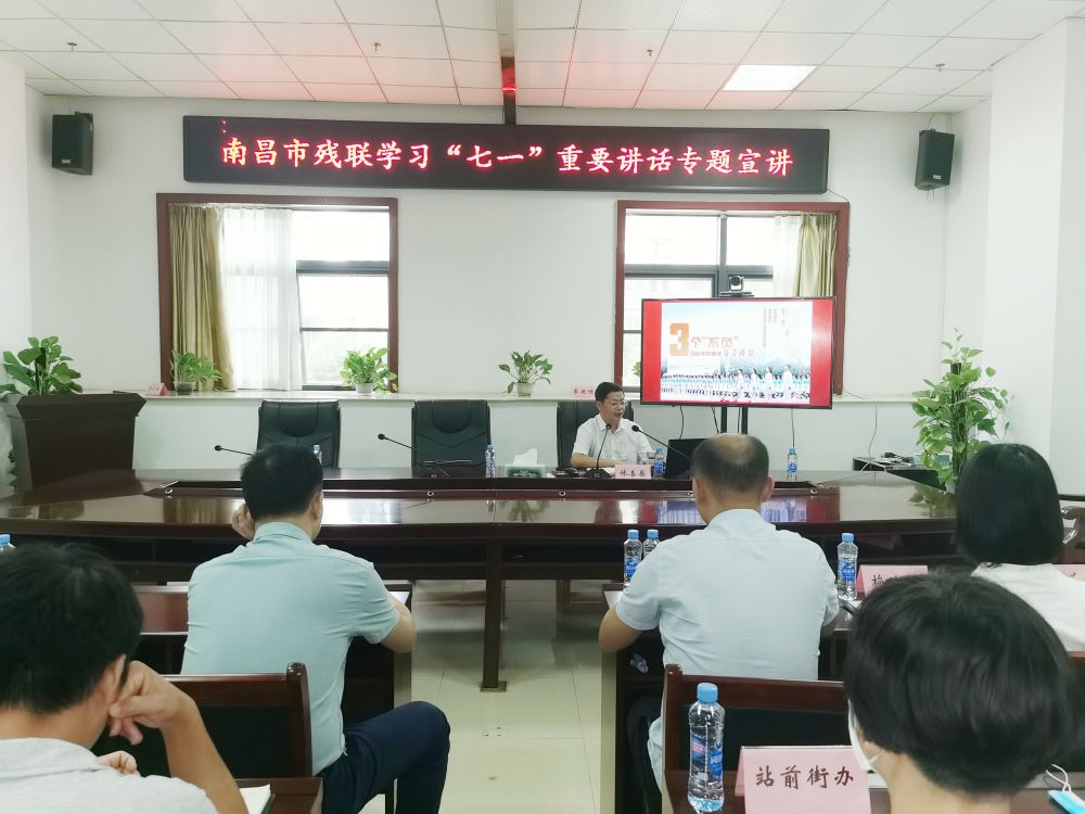 8月13日上午,市残联副理事长林善岳赴湾里残联开展习近平总书记“七一”重要讲话专题宣讲活动,湾里管理局社发办主任李建国主持。
