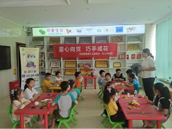为深化党史学习教育活动,丰富残疾儿童的业余文化生活,让新一代了解丝网花手工制作的基本知识,2021年8月16日,湾里管理局社会事务办在湾里可爱宝贝语言康复机构开展主题为“童心向党,巧手成花”的残疾儿童制作丝网花手工艺品活动。