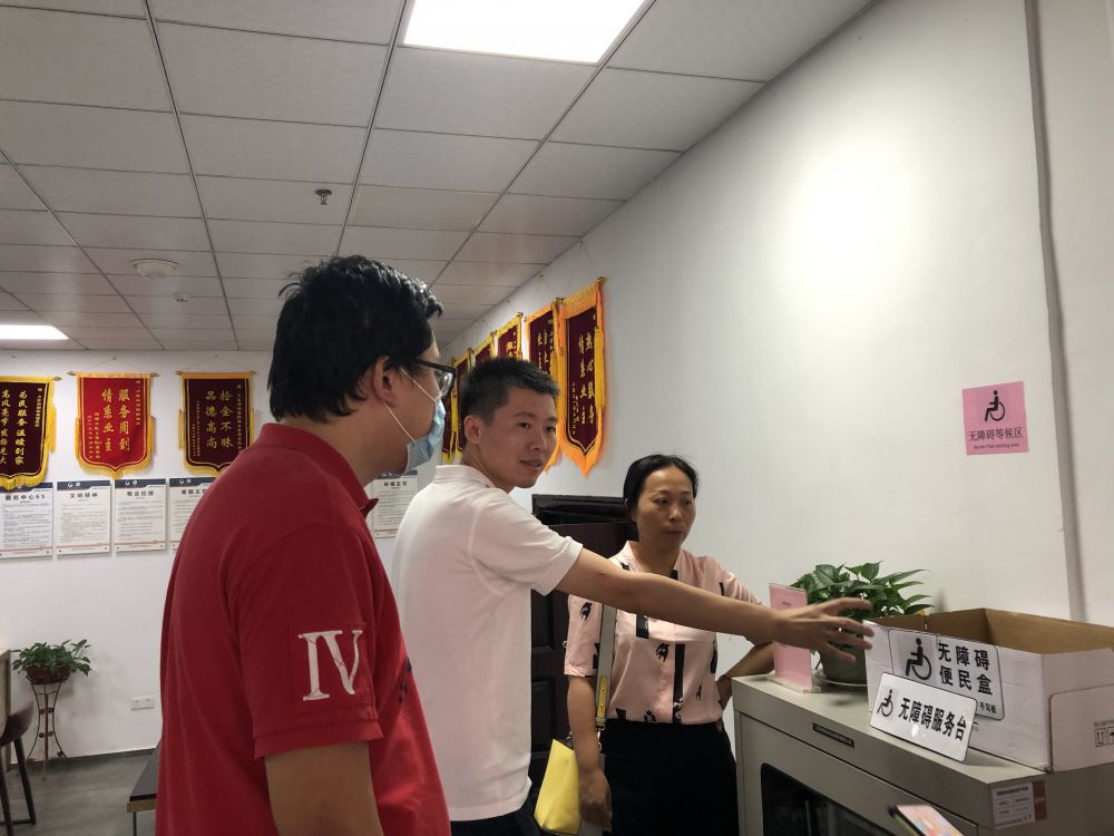 7月28日下午,东湖区残联理事长黄河带领维权股工作人员一行到力高澜湖小区检查指导无障碍环境建设整改工作。彭家桥街道党工委副书记聂华陪同。