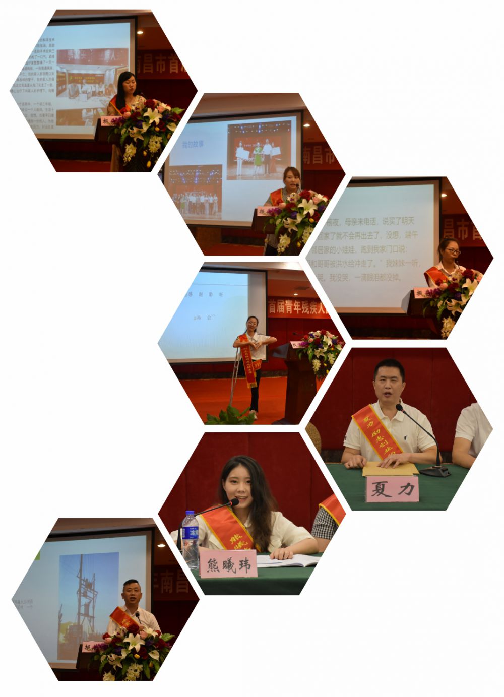 报告会上,江西科技学院讲师陈金义以《无臂硬汉绽放生命力量》为题,讲述了自己凭借坚定信念笑纳残疾、走出痛苦、成就人生、奉献社会的感人事迹;湾里肢残协会主席袁青以《路——不止于脚,也于心》为题,讲述了自己艰苦求学、励志求职、公益实践、荣誉责任的心路历程;“心贴心”艺术团演员熊曦玮以《折翼天使唱响美好生活乐章》为题,讲述了自己艰辛做康复、梦想再起航、讴歌新时代的成长经历;御按堂“洪派”盲人按摩中心创始人夏力以《用指尖缔造光明》为题,讲述了自己潜心钻研技能、艰辛创业闯关、巧手创辉煌的精彩人生;新建区残联专干黄春梅以《伴“碍”共存 与“爱”同行》为题,讲述了自己跨越人生障碍、实现人生价值、勇于奉献社会的大爱之路;淘宝“云客服”云导师龚希禧以《互联网+ 助我体面就业》为题,讲述了自己历经生活艰辛、通过淘宝“云客服”实现体面就业的追梦之路;罗丹艺术画室创办人林玉芳以《活出生命的绽放》为题,讲述了自己敢闯敢拼、乐观向上、迎难而上、回报社会的闪亮人生。报告团成员们发自肺腑、感人至深的先进事迹,全面展现了我市残疾人“自尊、自信、自强、自立”昂扬向上的精神风貌,令人动容,催人奋进!