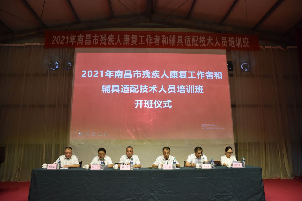 8月30日下午,2021年南昌市残疾人康复工作者和辅具适配技术人员培训班在南昌象山森林公园举办。省残联副理事长邹凯,市残联党组书记、理事长余颖出席开班仪式并讲话,市残联副理事长邓林和,四级调研员徐训波、周红华出席开班仪式,副理事长吴卫平主持开班仪式。