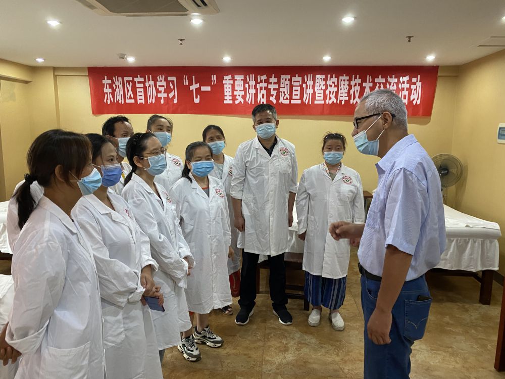 东湖区残联携手“五大”残疾人专门协会以举办专题宣讲和主题活动的形式,激励引领广大残疾人朋友不忘初心感党恩,坚定信念跟党走,以更加奋发有为的姿态积极走出家门、融入社会,为东湖区残疾人事业发展贡献自身的力量。