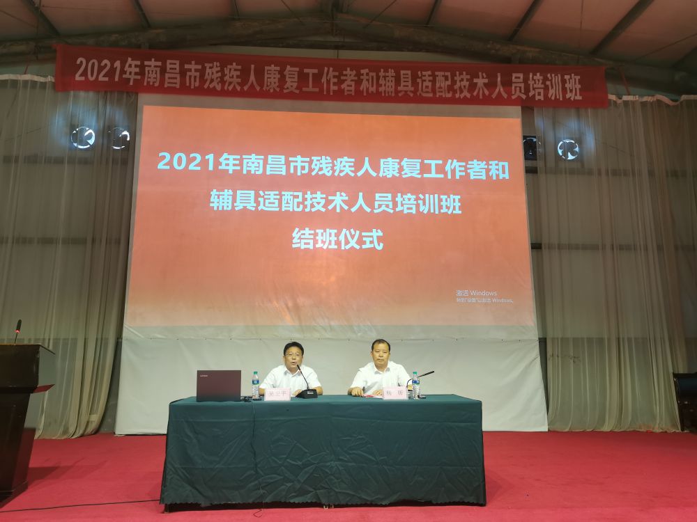 9月2日上午, 2021年南昌市残疾人康复工作者和辅具适配技术人员培训班在象山森林公园圆满结业,市残联副理事长吴卫平出席结班仪式并作讲话。