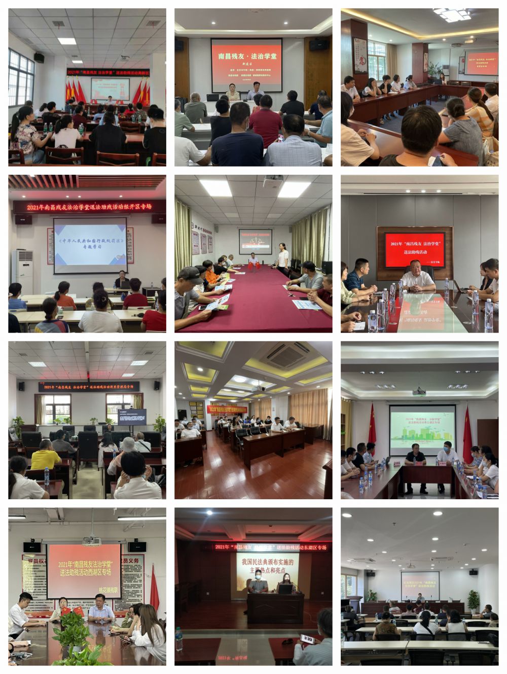 市残联积极落实省、市普法工作要点及省残联的普法工作要求,以受众为导向,五年如一日,坚持每年走遍南昌12个县区,将《中华人民共和国民法典》、《中华人民共和国刑法》、《中华人民共和国行政处罚法》、《中华人民共和国残疾人保障法》、《江西省残疾人保障条例》等法律法规热点知识送至基层残友身边。通过课堂讲授、课后答疑、免费咨询的方式,引导残疾人遵法守法,依法维权。同时,坚持守正创新,通过设立律师驻残疾人综合服务机构工作站、走进残疾人专门协会等方式,不断开拓残疾人普法新方法、新思路。