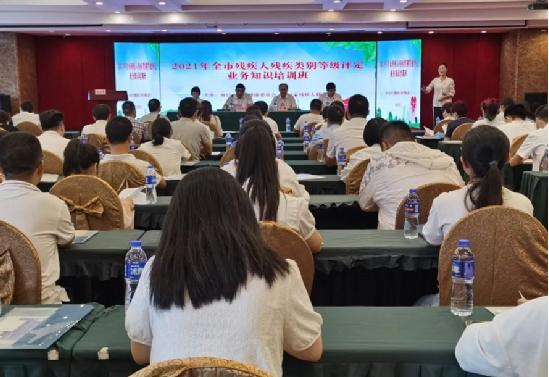 为进一步提高南昌市残疾人残疾类别等级评定医务人员业务能力,规范全市评残工作,9月29日,市残联和市卫健委在新吉花园酒店共同举办了全市残疾评定人员培训班。市委卫健工委委员、市卫健委副主任王群出席开班式并作动员讲话,会议由市残联副理事长邓林和主持。
