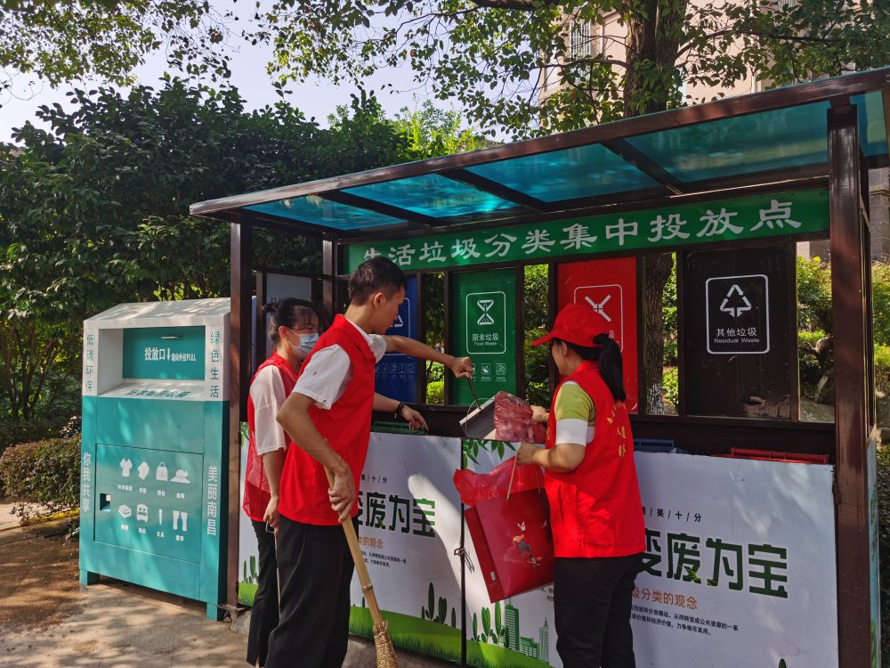 活动中,志愿者身穿红马甲,自带扫帚、铁钳、簸箕等工具,在社区工作人员的带领下,对绿化带、地面杂物和卫生死角等地进行了认真的清扫。经过志愿者们的辛勤劳动,小区卫生环境焕然一新。此外,志愿者们还向社区的居民发放了《南昌市文明行为促进条例》、疫情防控、垃圾分类等宣传资料,讲解了文明创建、疫情防控、垃圾分类等知识,得到了居民的一致好评。