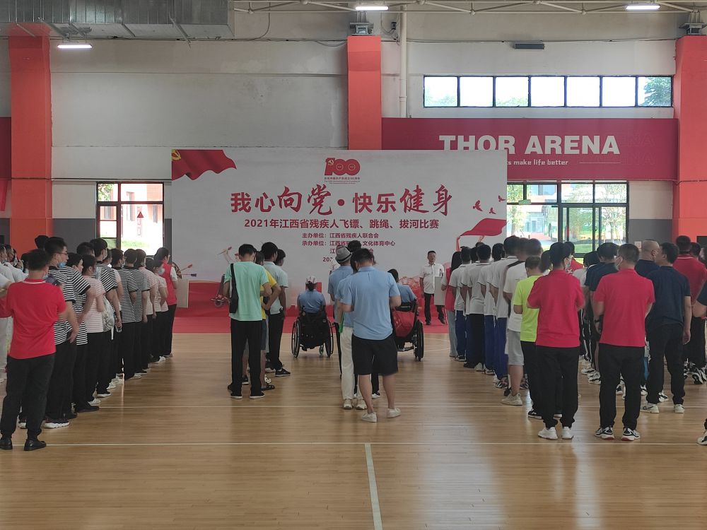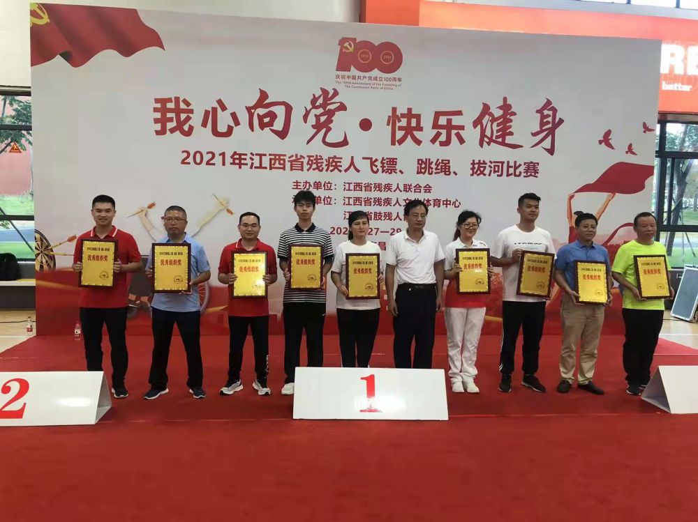 9月28日,“我心向党、快乐健身”2021年江西省残疾人飞镖、跳绳、拔河比赛在南昌市雷公坳文化体育产业园举行,全省共12支队伍参加比赛,我市选拔了13名队员代表南昌市参加比赛。