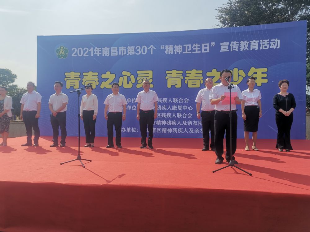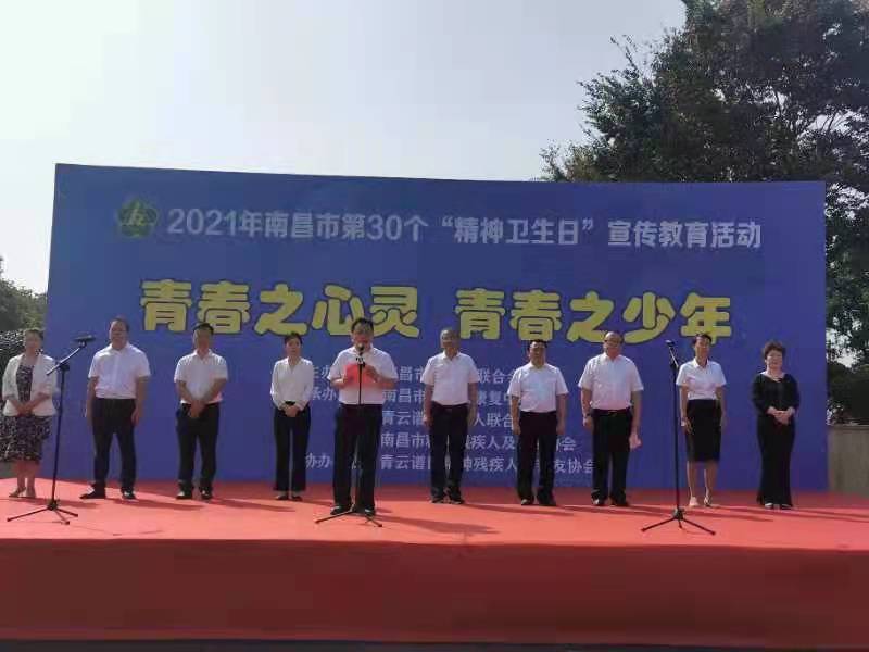 2021年10月10日是第30个“世界精神卫生日”,为进一步提升全民精神卫生和心理健康意识,营造有利于促进人的心理健康及和谐社会环境,今天上午,以“青春之心灵,青春之少年”为主题的南昌市第30个“世界精神卫生日”宣传教育活动启动仪式在青云谱区体育公园举行,省残联党组成员、副理事长邹凯,市残联党组成员、副理事长吴卫平,青云谱区副区长夏辉,省残联三级调研员曾建莉等领导出席活动,活动由市残联四级调研员徐训波主持。